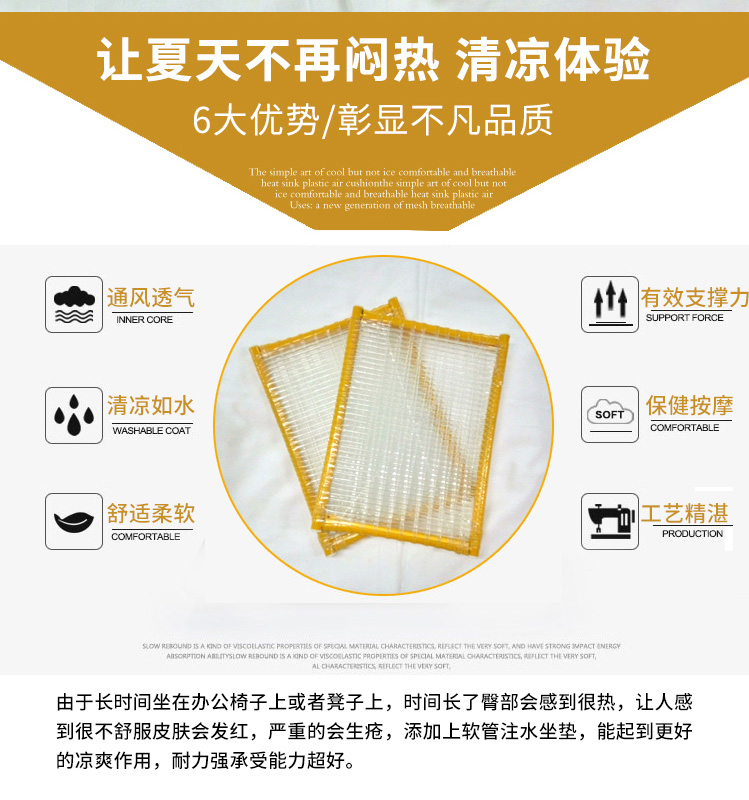 夏凉软管服装厂坐垫网格通気性制衣厂坐垫散热方凳子电子厂注水座垫 黄金黄铁管水坐垫 34*24*2【图片 价格 品牌 报价】-